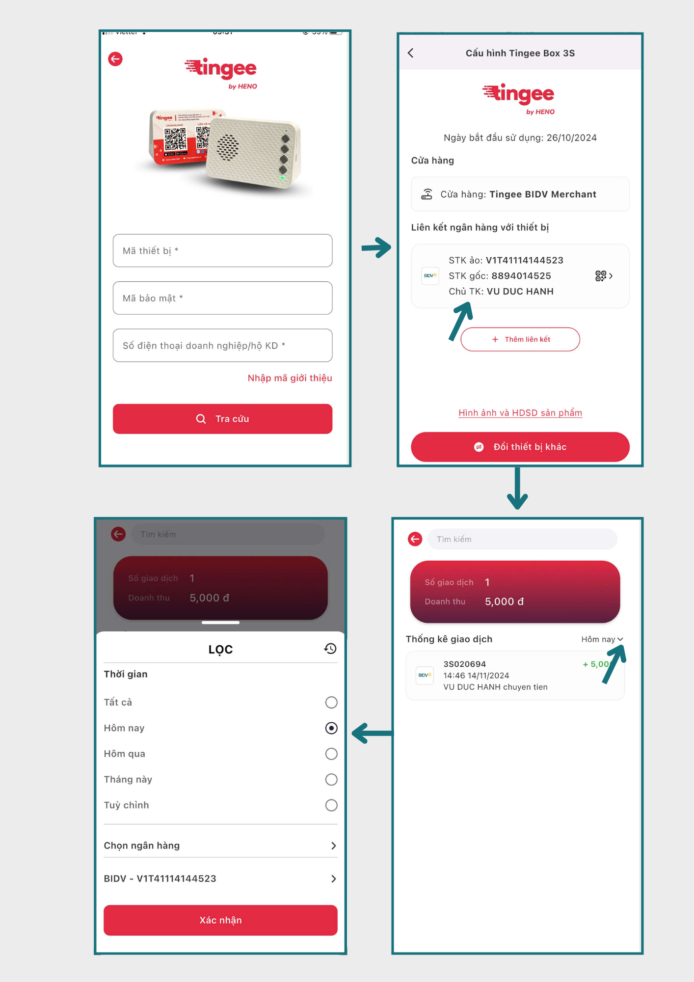 Để xem lại, kiểm tra các giao dịch thanh toán trên Tingee Box, khách hàng thực hiện như sau: