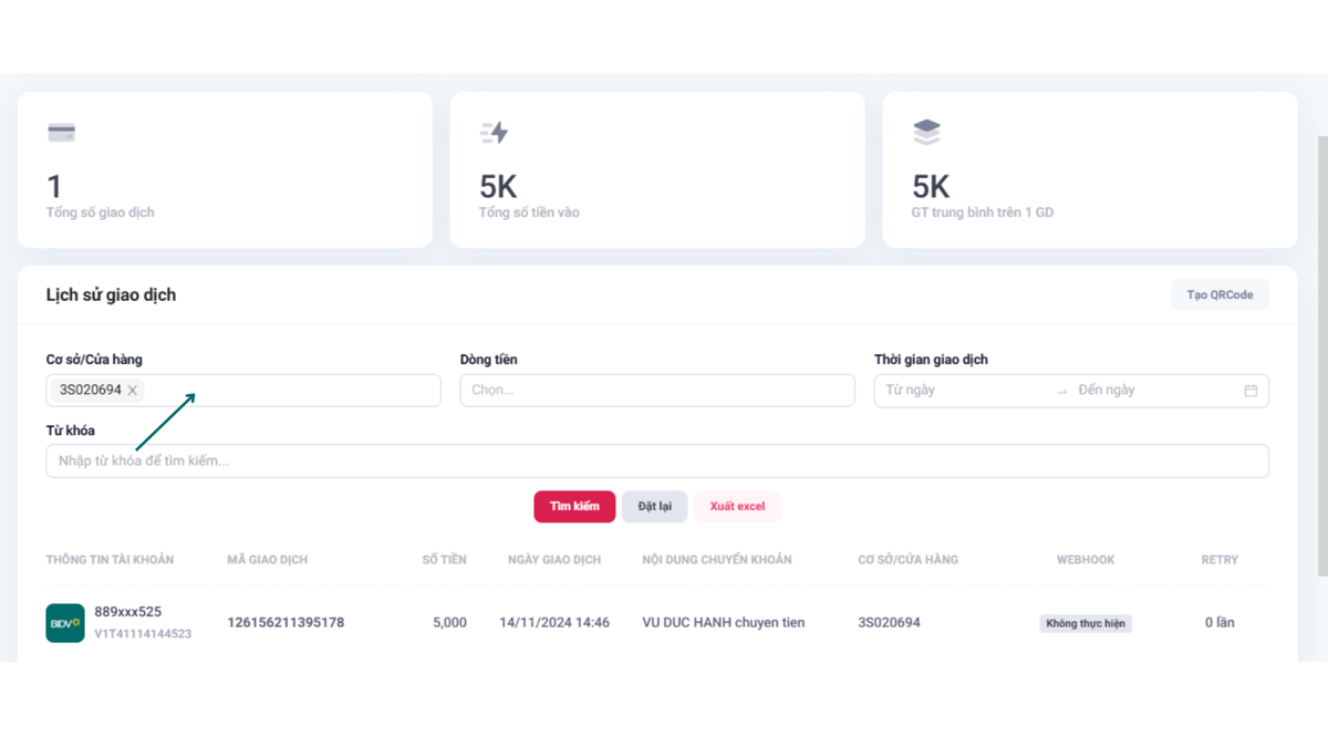 Bước 4: Sau khi đã chọn đầy đủ các tiêu chí, bấm tìm kiếm để xem lại các giao dịch